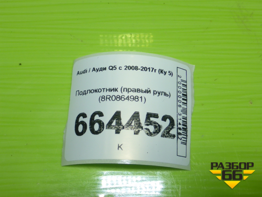 Подлокотник (правый руль) (8R0864981) для Audi Q5 c 2008-2017г (Ку 5) в Тюмени