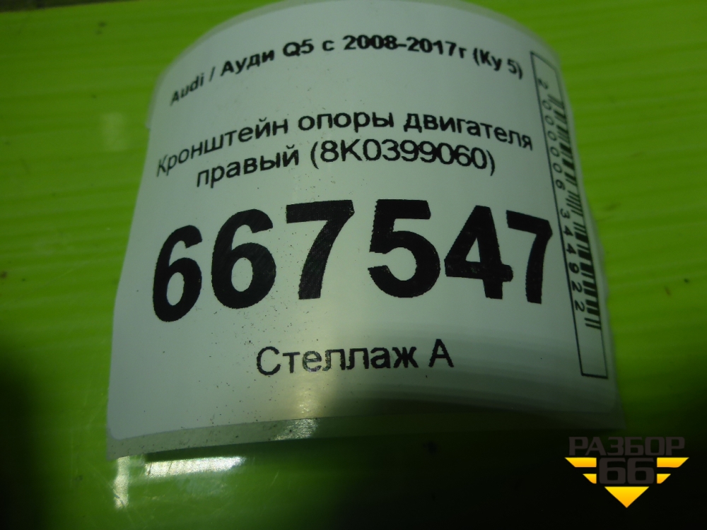 Кронштейн опоры двигателя правый (8K0399060) для Audi Q5 c 2008-2017г (Ку 5) в Тюмени