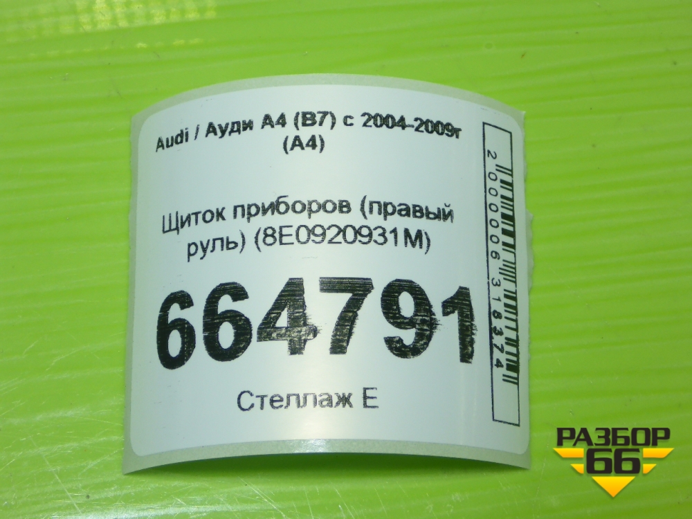 Щиток приборов (правый руль) (8E0920931M) для Audi A4 (В7) с 2004-2009г (А4) в Тюмени