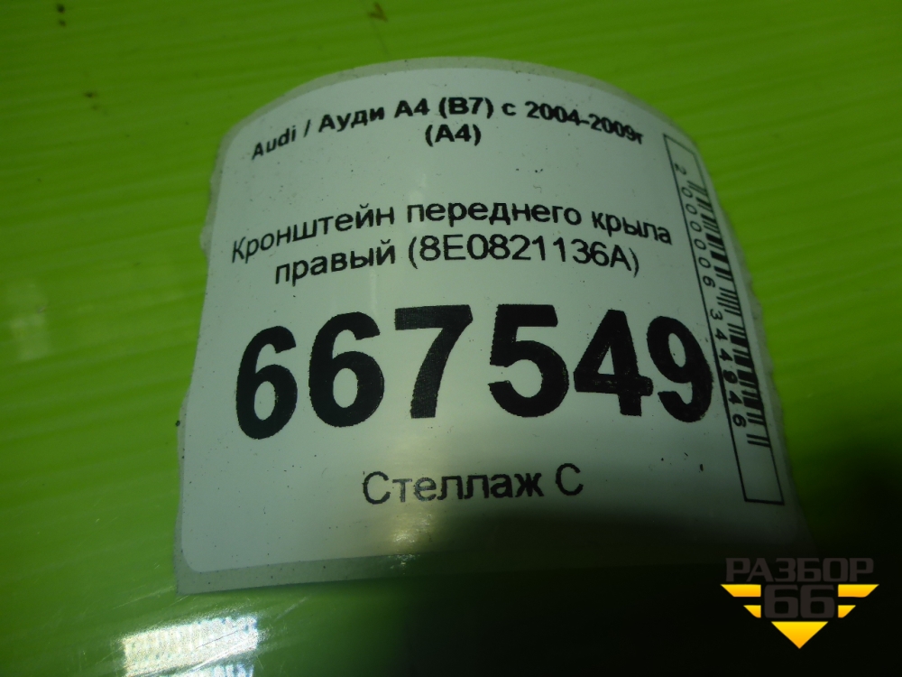 Кронштейн переднего крыла правый (8E0821136A) для Audi A4 (В7) с 2004-2009г (А4) в Тюмени