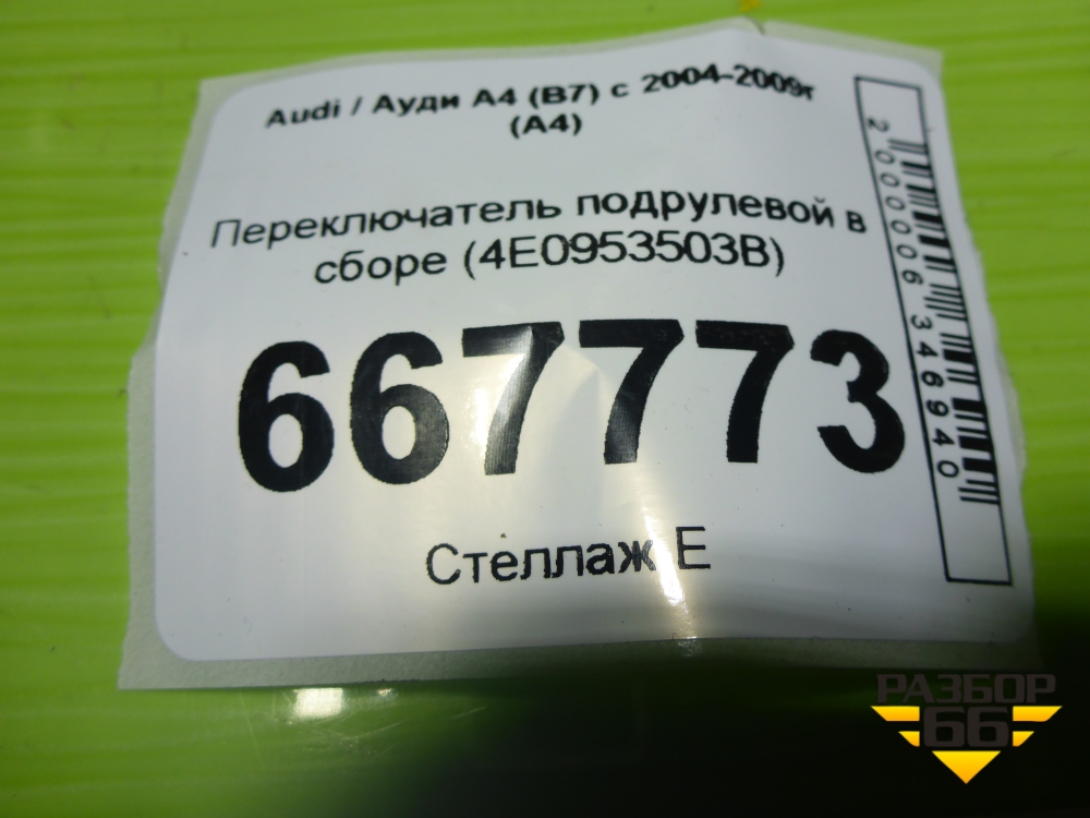 Переключатель подрулевой в сборе (4E0953503B) для Audi A4 (В7) с 2004-2009г (А4) в Тюмени