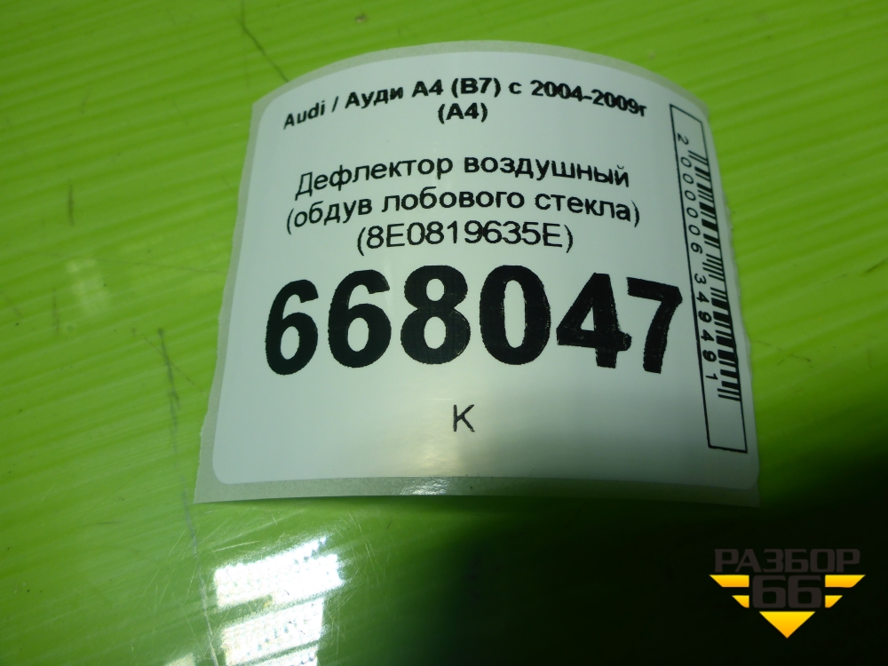 Дефлектор воздушный (обдув лобового стекла) (8E0819635E) для Audi A4 (В7) с 2004-2009г (А4) в Тюмени