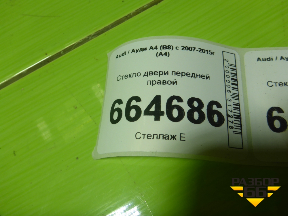 Стекло двери передней правой для Audi A4 (В8) с 2007-2015г (А4) в Тюмени