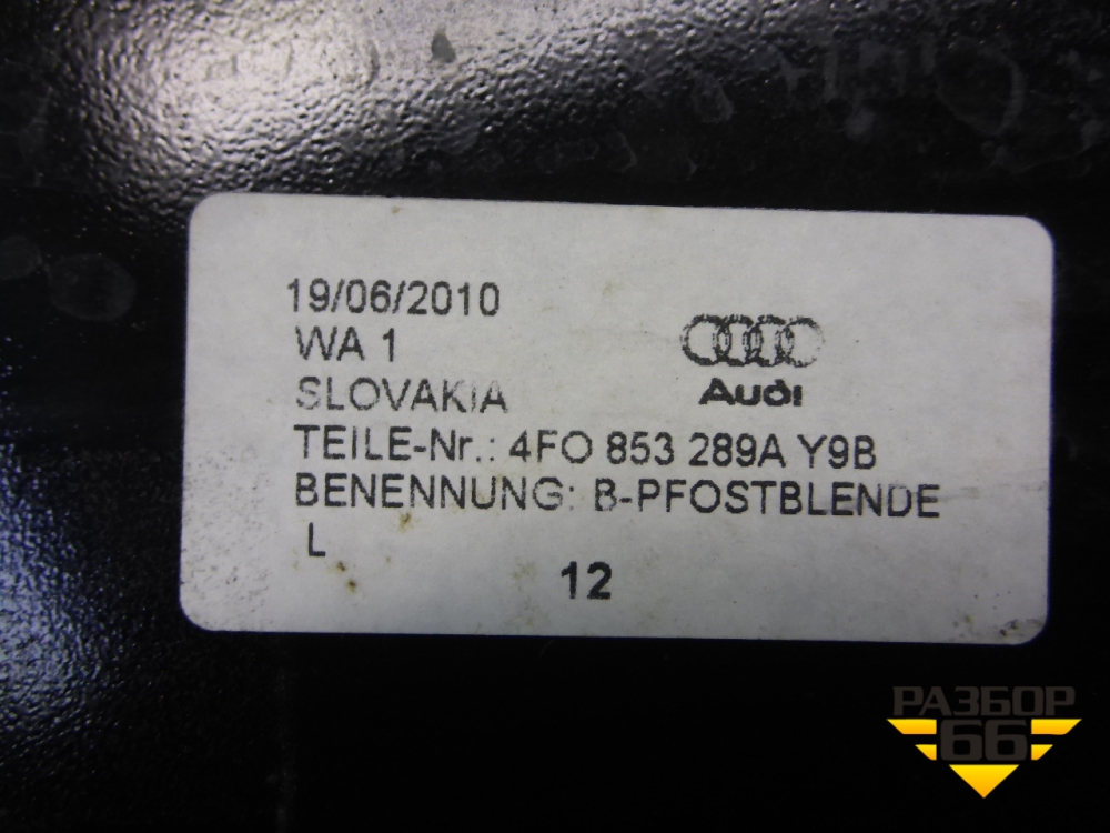 Накладка стойки (центральная левая) (4F0853289A) для Audi A6 (C6) с 2004-2011г (А6) в Тюмени