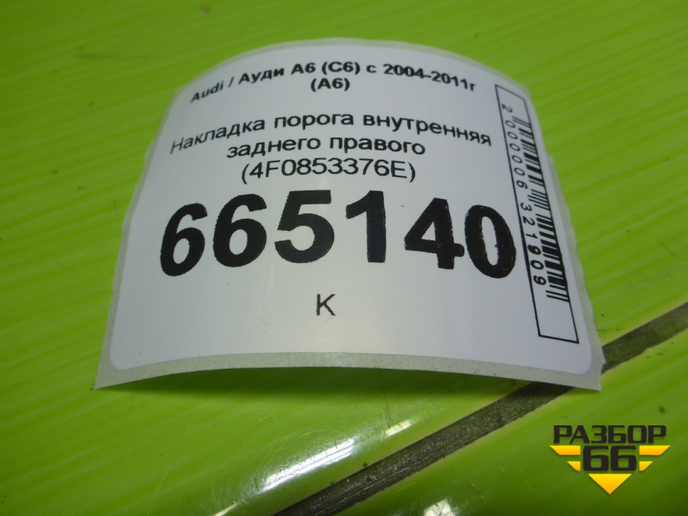 Накладка порога внутренняя заднего правого (4F0853376E) для Audi A6 (C6) с 2004-2011г (А6) в Тюмени