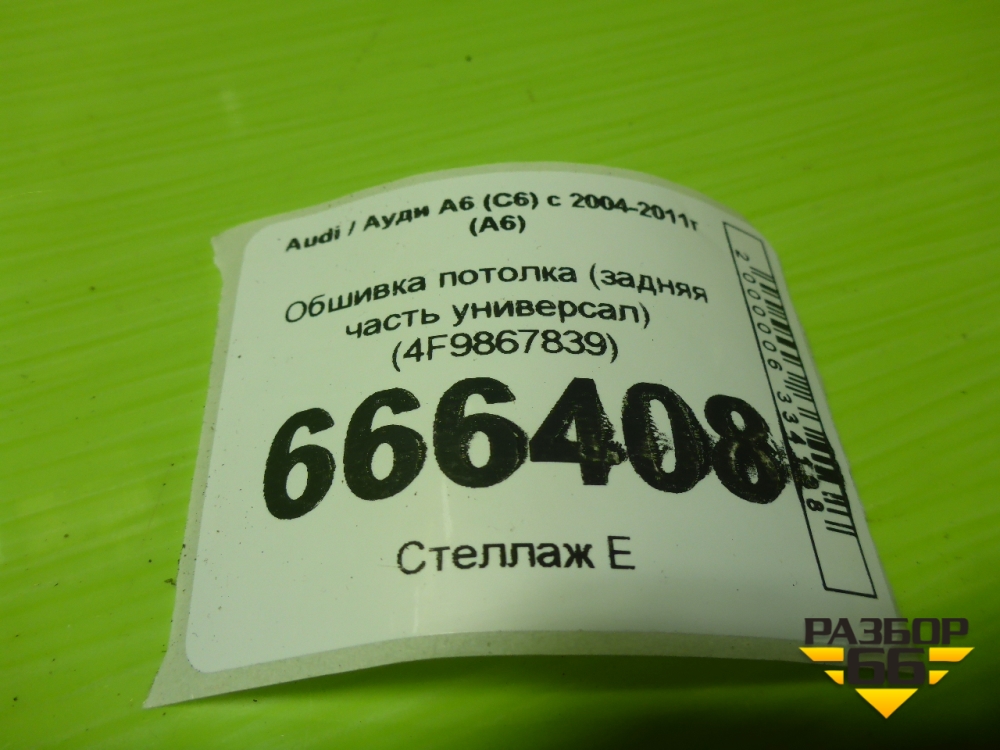 Обшивка потолка (задняя часть универсал) (4F9867839) для Audi A6 (C6) с 2004-2011г (А6) в Тюмени