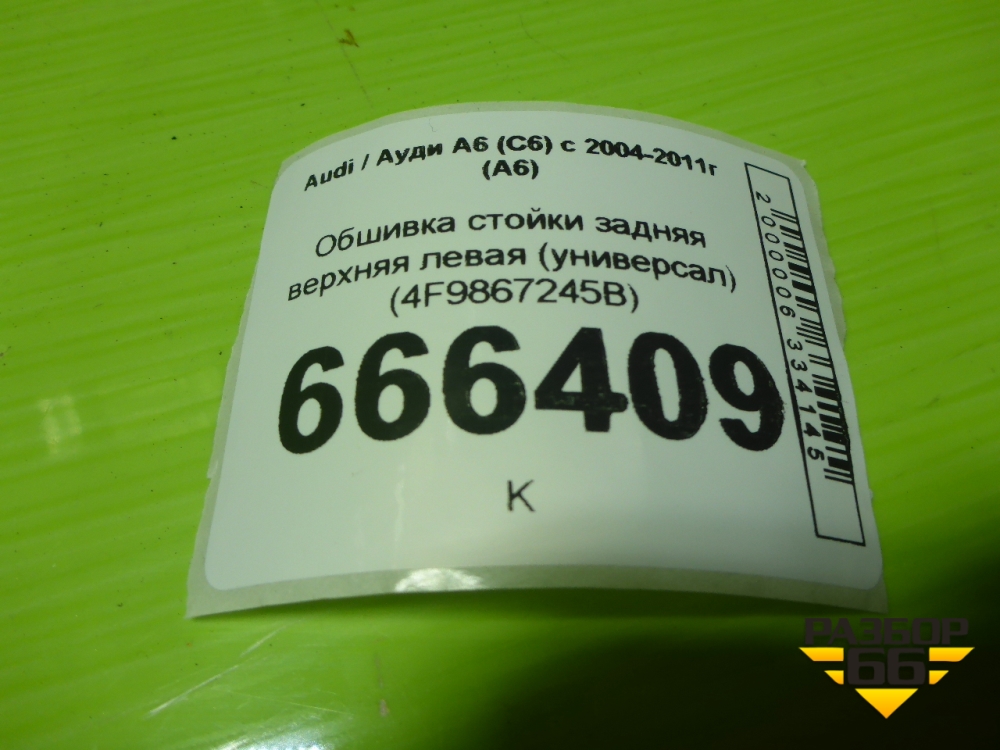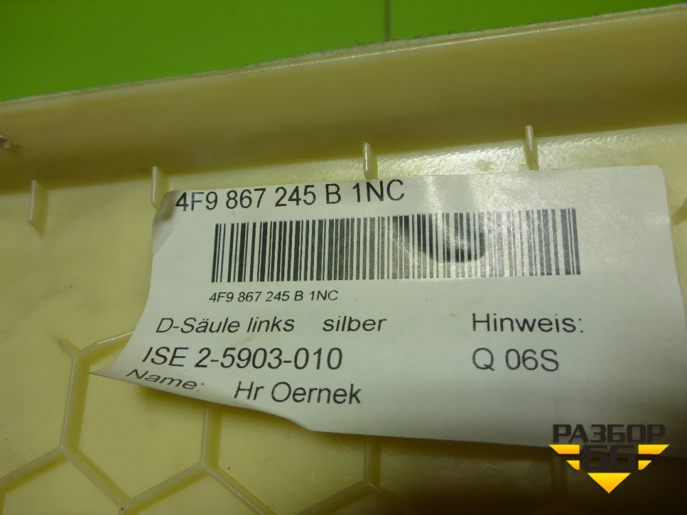 Обшивка стойки задняя верхняя левая (универсал) (4F9867245B) для Audi A6 (C6) с 2004-2011г (А6) в Тюмени