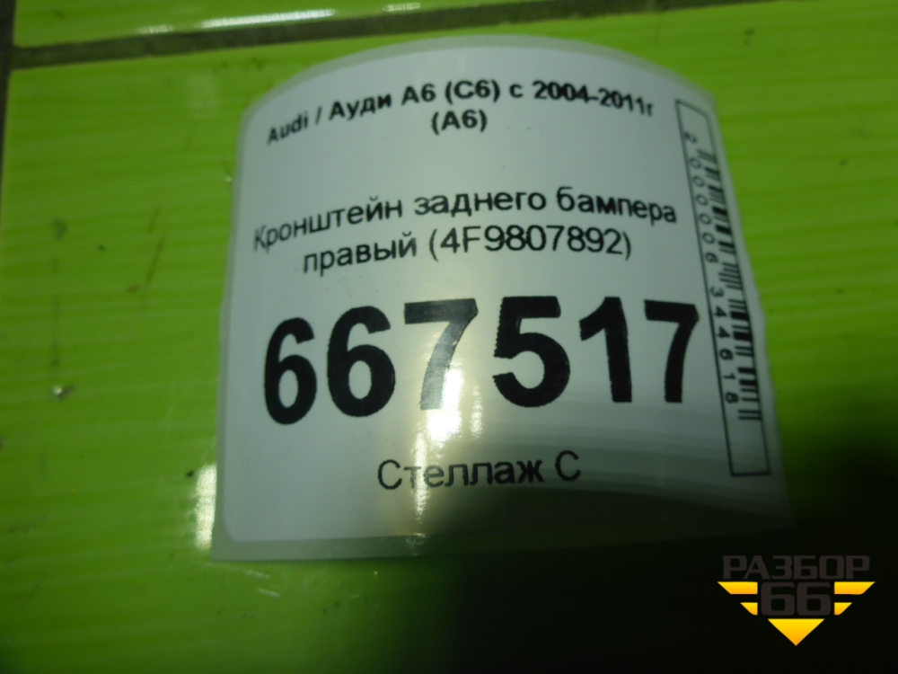 Кронштейн заднего бампера правый (4F9807892) для Audi A6 (C6) с 2004-2011г (А6) в Тюмени