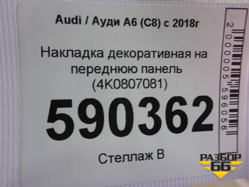 Накладка декоративная на переднюю панель (4K0807081) для Audi A6 (C8) с 2018г (А6) в Тюмени