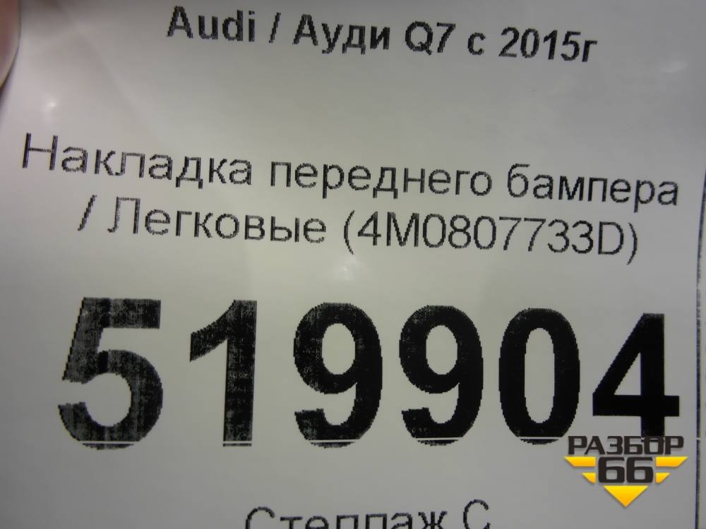 Накладка переднего бампера (4M0807733D) для Audi Q7 c 2015г (Ку 7) в Тюмени