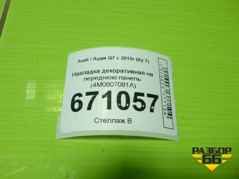 Накладка декоративная на переднюю панель (4M0807081A) для Audi Q7 c 2015г (Ку 7) в Тюмени