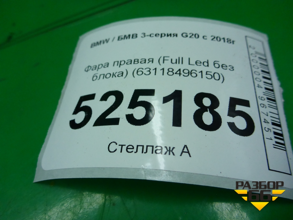 Фара правая (Full Led без блока) (63118496150) ( 9481696) для BMW 3-серия G20 с 2018г в Тюмени