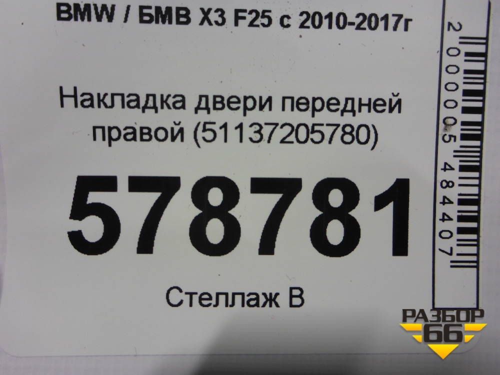 Накладка двери передней правой (51137205780) для BMW X3 F25 с 2010-2017г (Х3 Ф25) в Тюмени