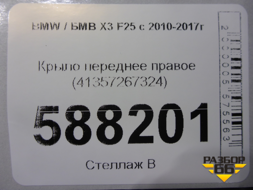 Крыло переднее правое (41357267324) для BMW X3 F25 с 2010-2017г (Х3 Ф25) в Тюмени