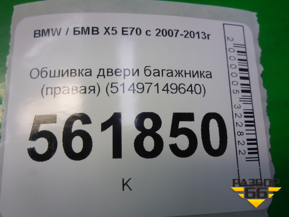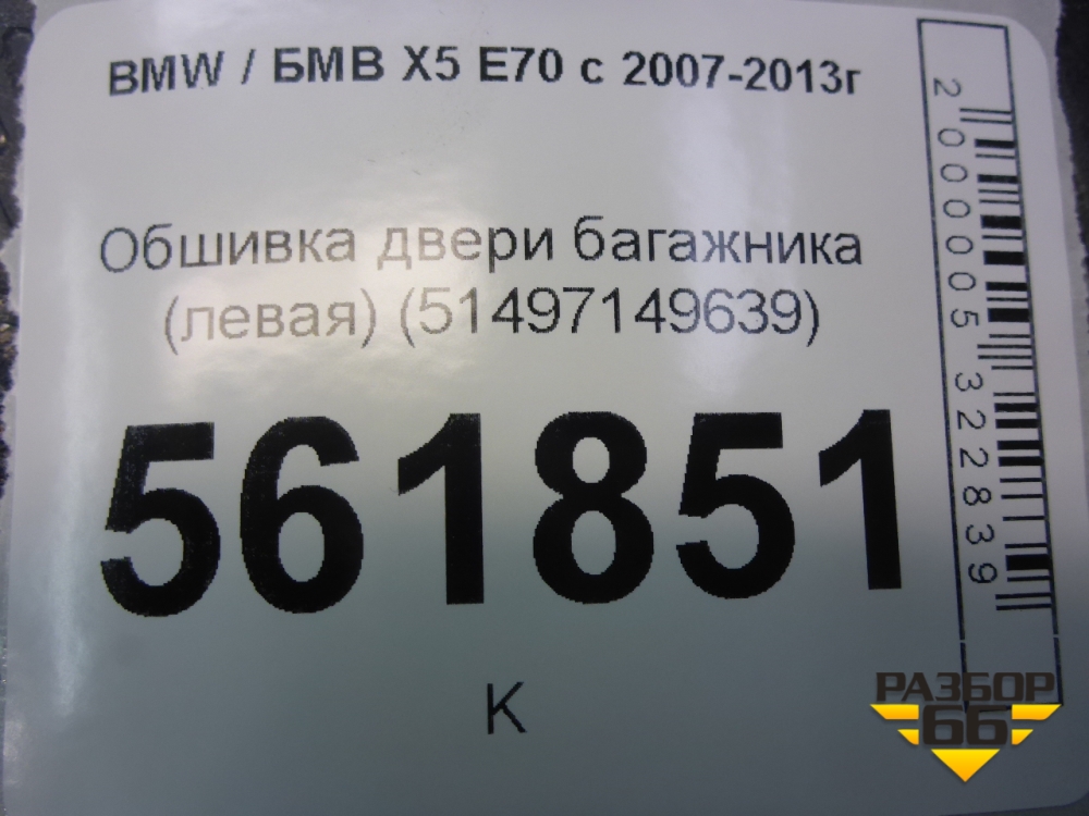 Обшивка двери багажника (левая) (51497149639) для BMW X5 E70 с 2007-2013г (Х5 Е70) в Тюмени