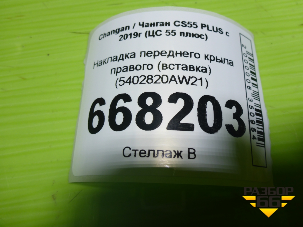 Накладка переднего крыла правого (вставка) (5402820AW21) для Changan CS55 PLUS с 2019г (ЦС 55 плюс) в Тюмени