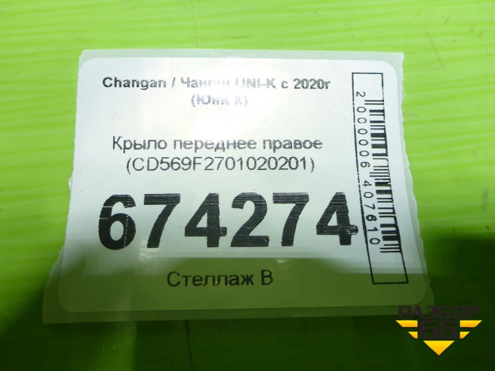 Крыло переднее правое (CD569F2701020201) для Changan UNI-K с 2020г (Юни К) в Тюмени