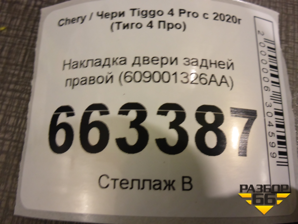 Накладка двери задней правой (609001326AA) для Chery Tiggo 4 Pro с 2020г (Тиго 4 Про) в Тюмени