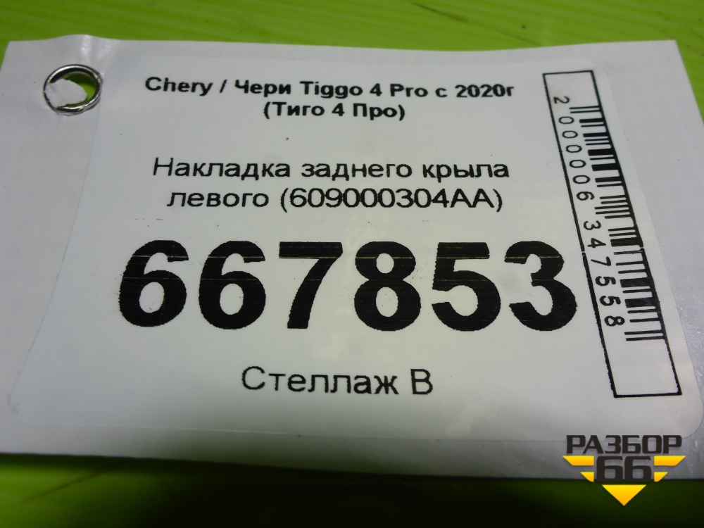 Накладка заднего крыла левого (609000304AA) для Chery Tiggo 4 Pro с 2020-2025г (Тиго 4 Про) в Тюмени