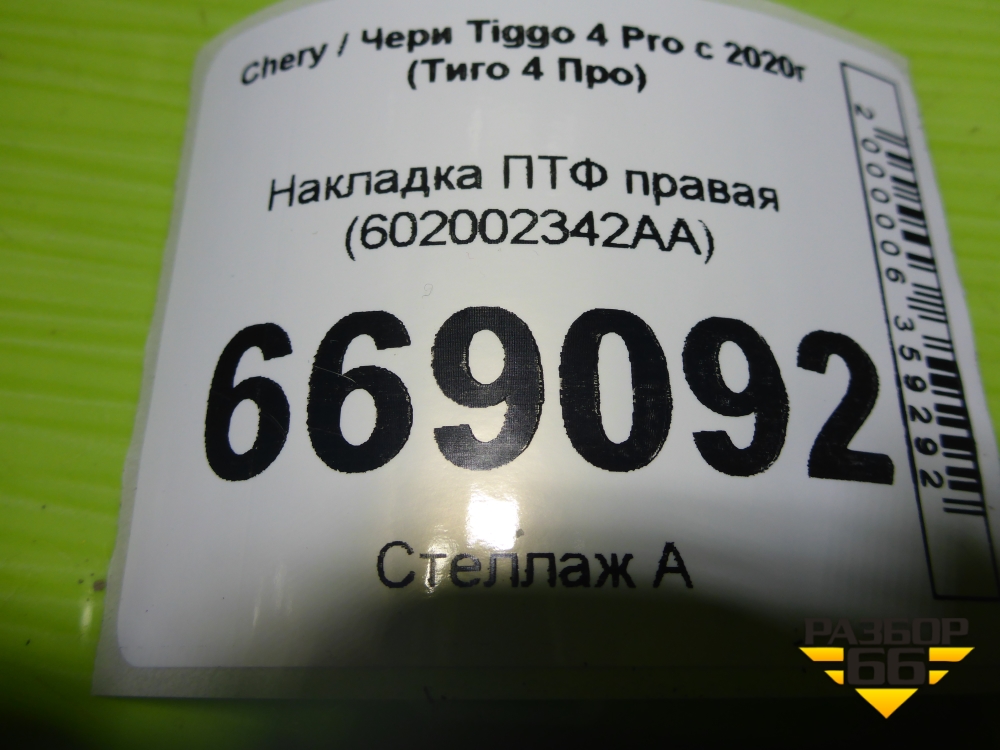 Накладка ПТФ правая (602002342AA) для Chery Tiggo 4 Pro с 2020-2025г (Тиго 4 Про) в Тюмени