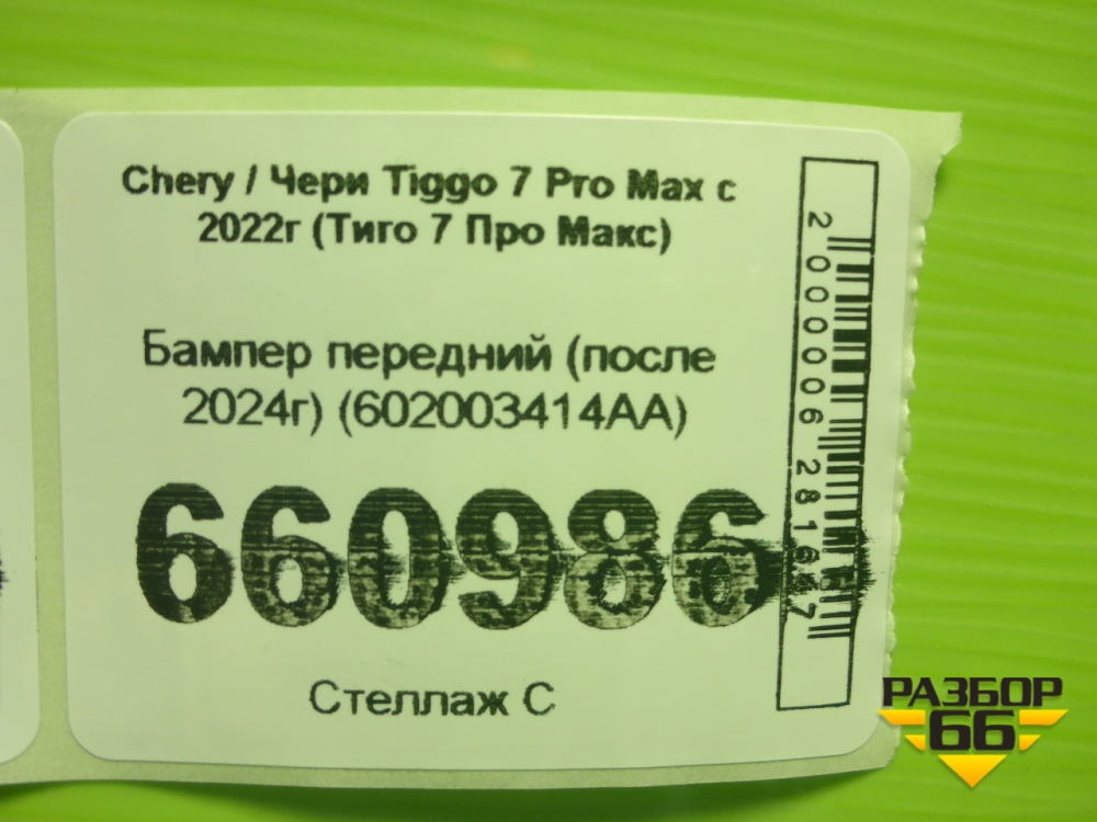 Бампер передний (после 2024г) (602003414AA) для Chery Tiggo 7 Pro Max с 2022г (Тиго 7 Про Макс) в Тюмени