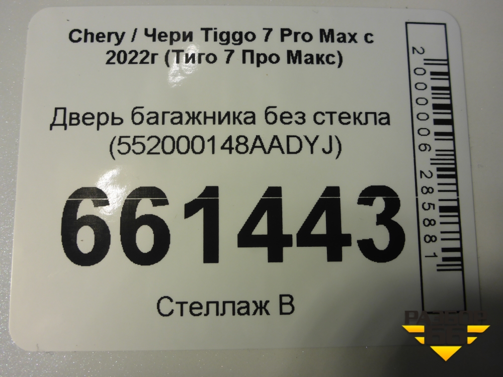 Дверь багажника без стекла (552000148AADYJ) для Chery Tiggo 7 Pro Max с 2022г (Тиго 7 Про Макс) в Тюмени