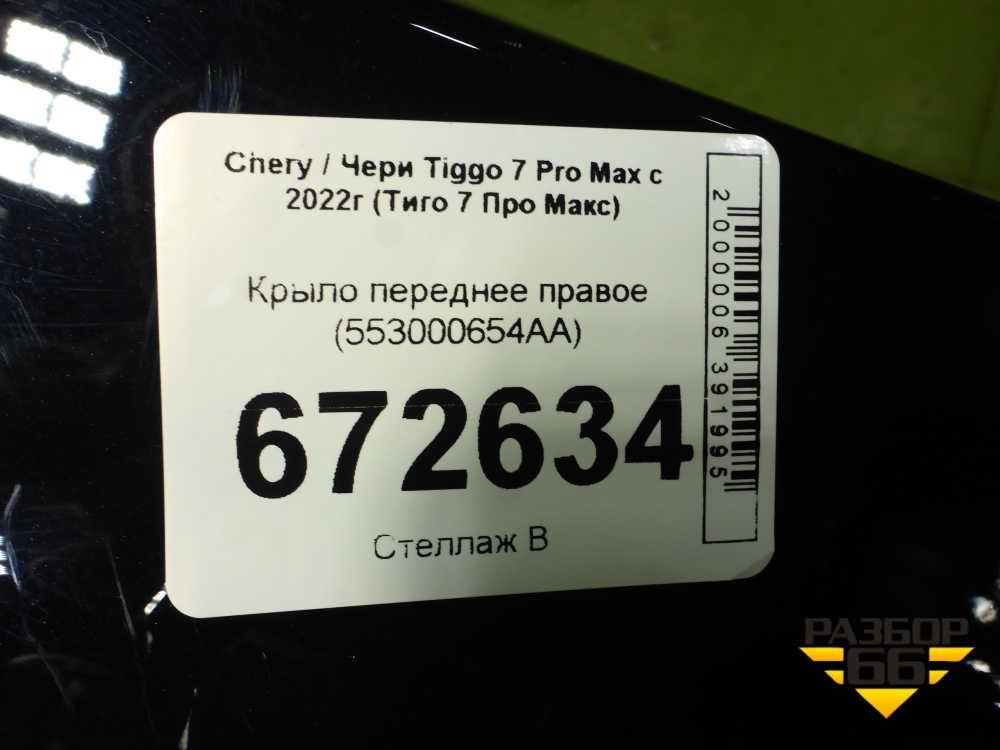 Крыло переднее правое (553000654AA) для Chery Tiggo 7 Pro Max с 2022г (Тиго 7 Про Макс) в Тюмени