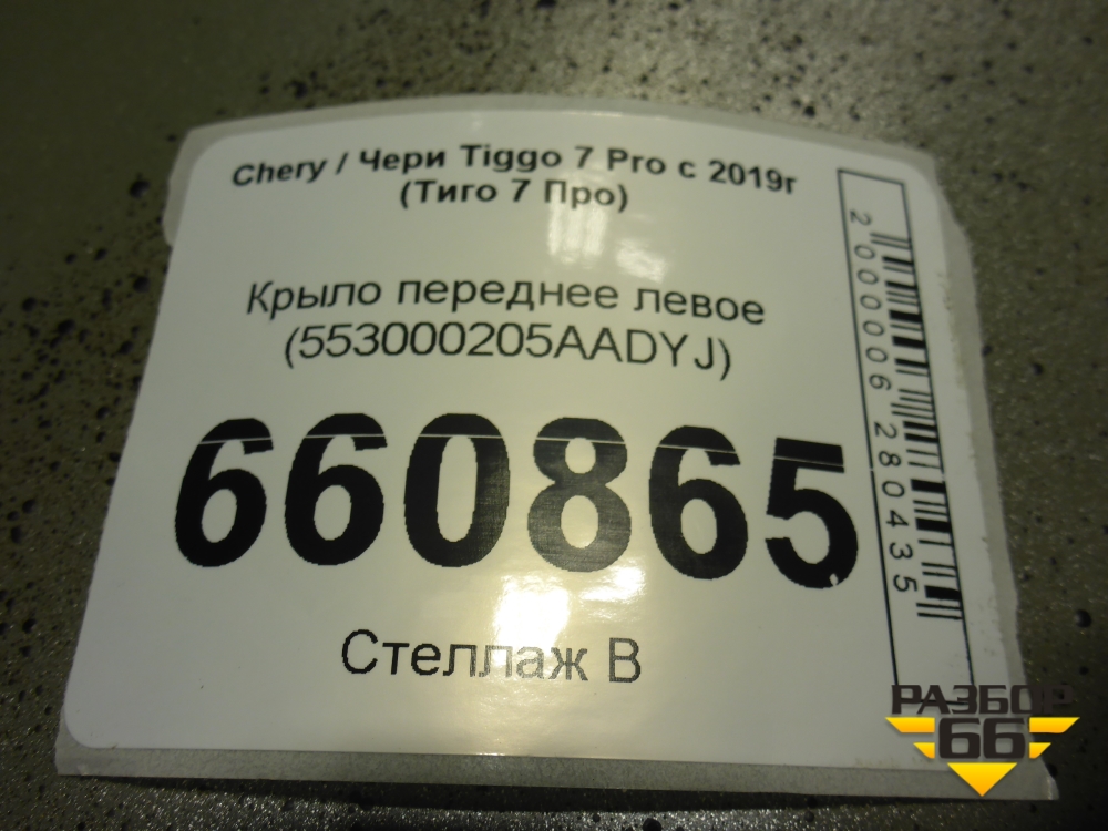 Крыло переднее левое (553000205AADYJ) для Chery Tiggo 7 Pro с 2019г (Тиго 7 Про) в Тюмени