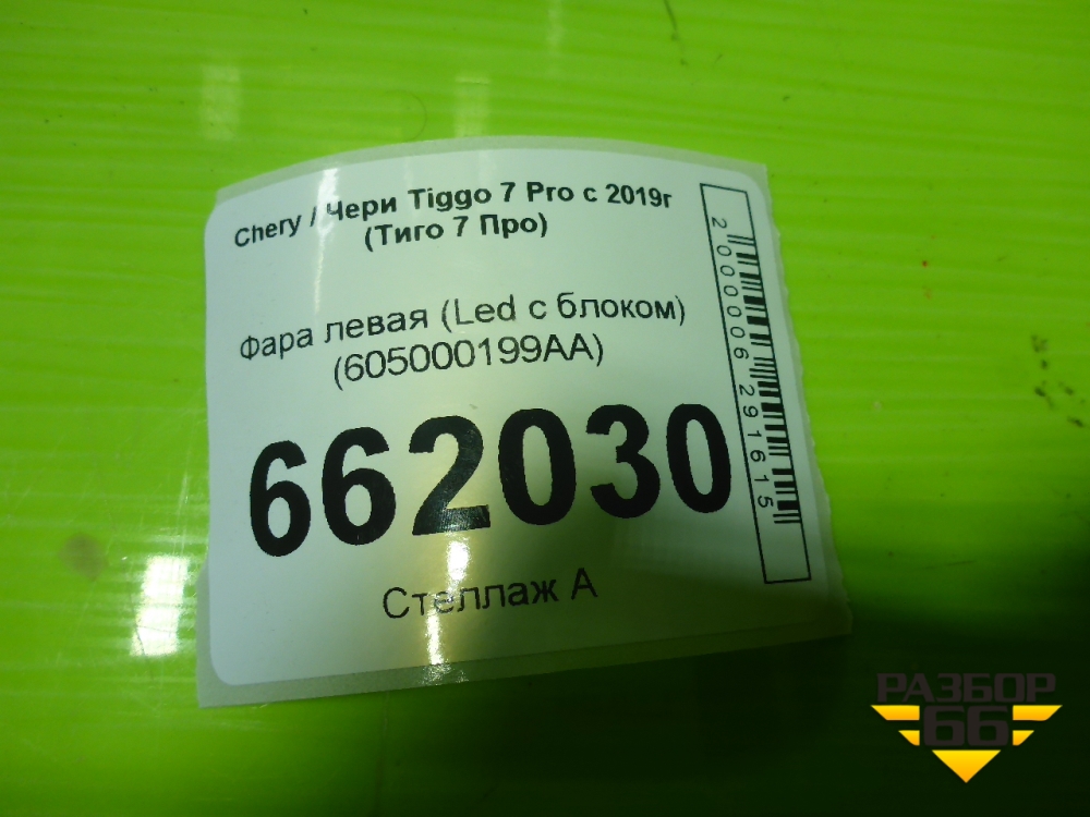 Фара левая (Led с блоком) (605000199AA) для Chery Tiggo 7 Pro с 2019г (Тиго 7 Про) в Тюмени