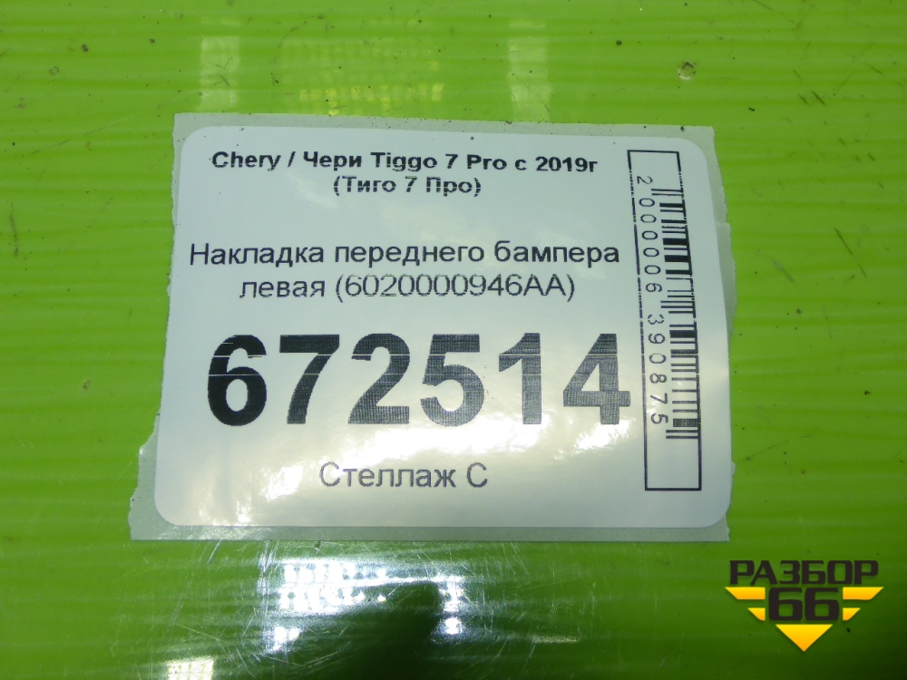 Накладка переднего бампера левая (6020000946AA) для Chery Tiggo 7 Pro с 2019г (Тиго 7 Про) в Тюмени