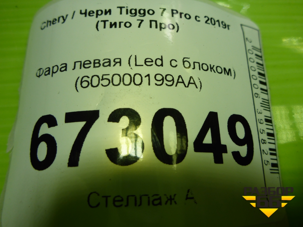 Фара левая (Led с блоком) (605000199AA) для Chery Tiggo 7 Pro с 2019г (Тиго 7 Про) в Тюмени