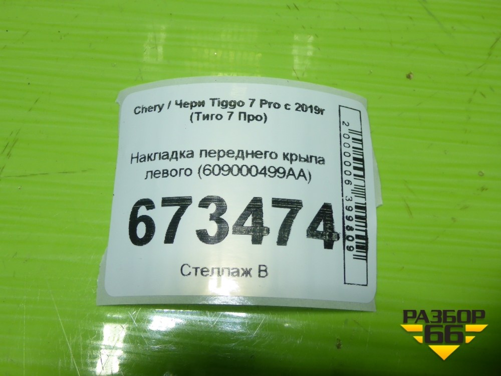 Накладка переднего крыла левого (609000499AA) для Chery Tiggo 7 Pro с 2019г (Тиго 7 Про) в Тюмени