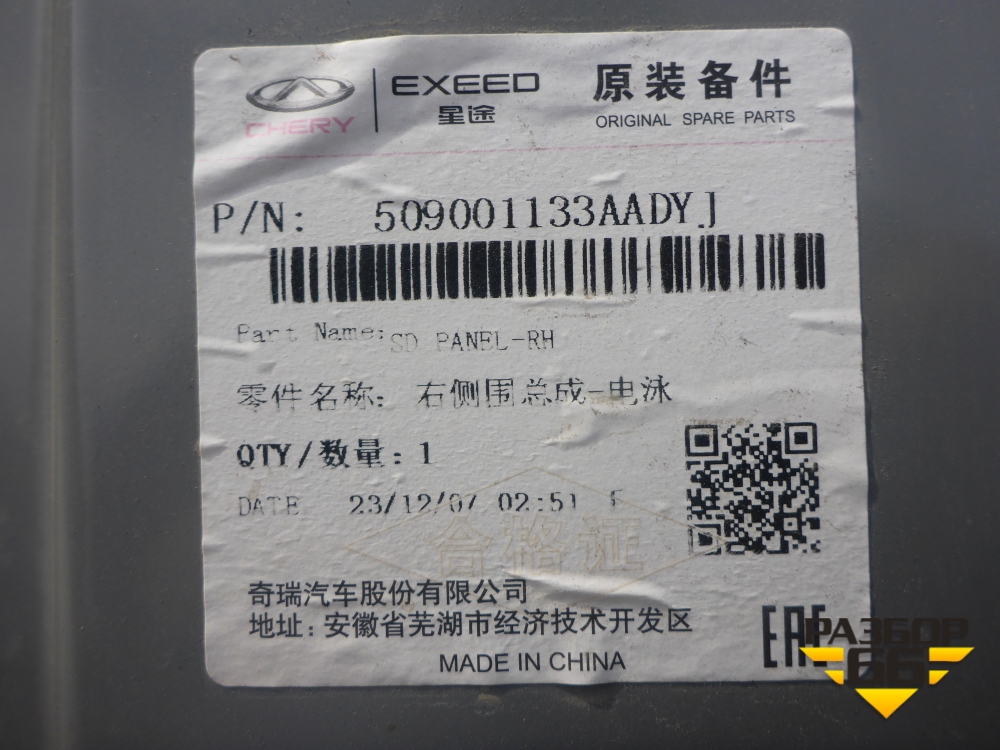 Боковина кузова правая (новая) (509001133AADYJ) для Chery Tiggo 7 Pro с 2019г (Тиго 7 Про) в Тюмени