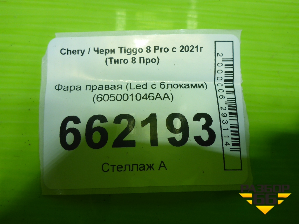 Фара правая (Led c блоками) (605001046AA) для Chery Tiggo 8 Pro с 2021г (Тиго 8 Про) в Тюмени
