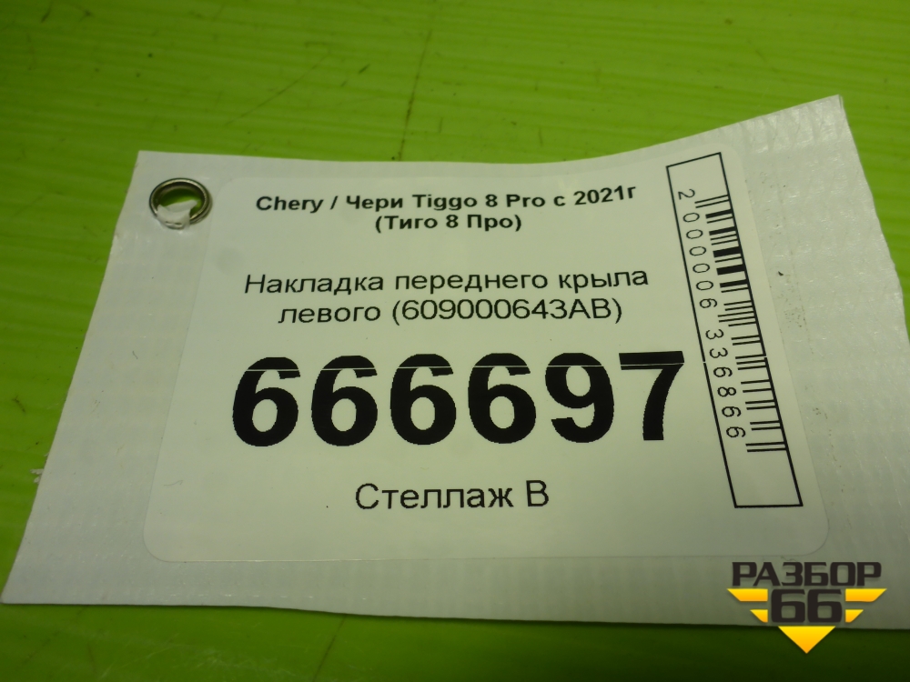 Накладка переднего крыла левого (609000643AB) для Chery Tiggo 8 Pro с 2021г (Тиго 8 Про) в Тюмени