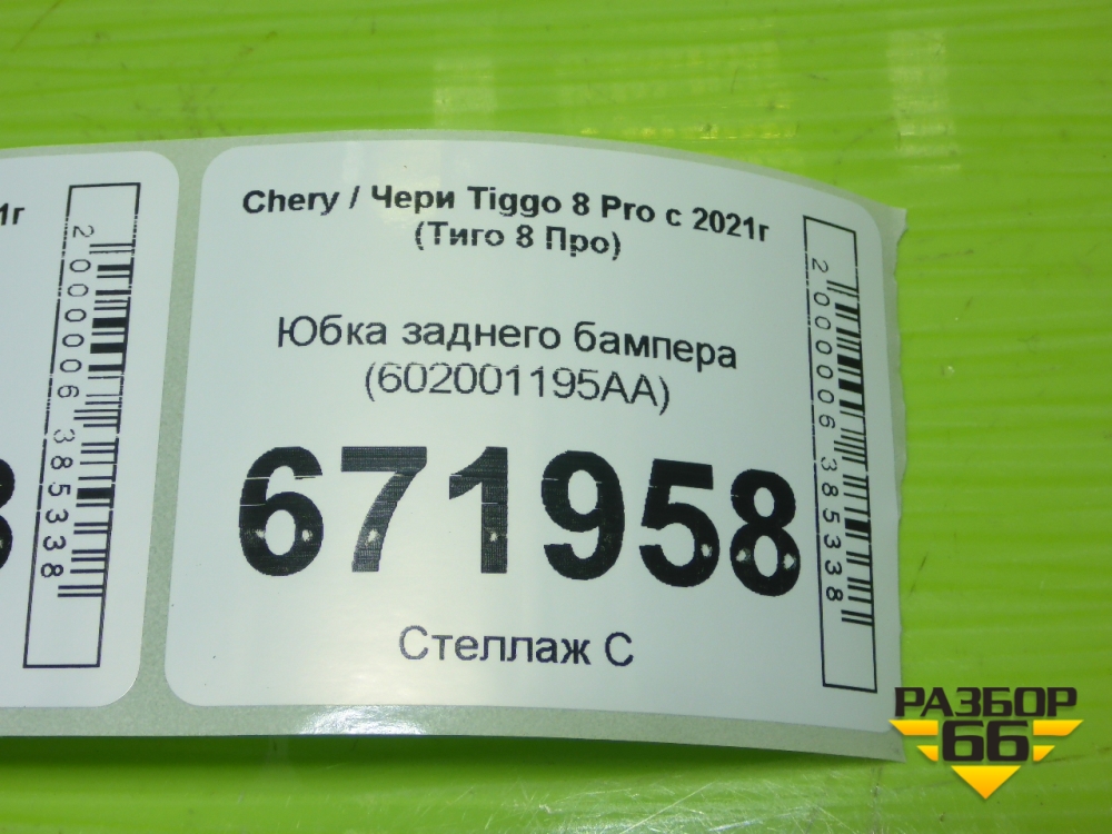 Юбка заднего бампера (602001195AA) для Chery Tiggo 8 Pro с 2021г (Тиго 8 Про) в Тюмени