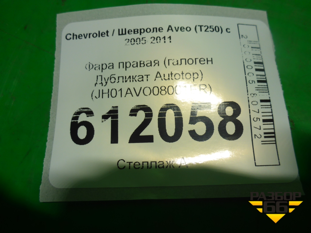 Фара правая (галоген Дубликат Autotop) (JH01AVO08001ER) для Chevrolet Aveo (T250) с 2005-2011 (Авео Т250) в Тюмени