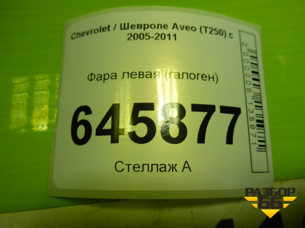 Фара левая (галоген) для Chevrolet Aveo (T250) с 2005-2011 (Авео Т250) в Тюмени