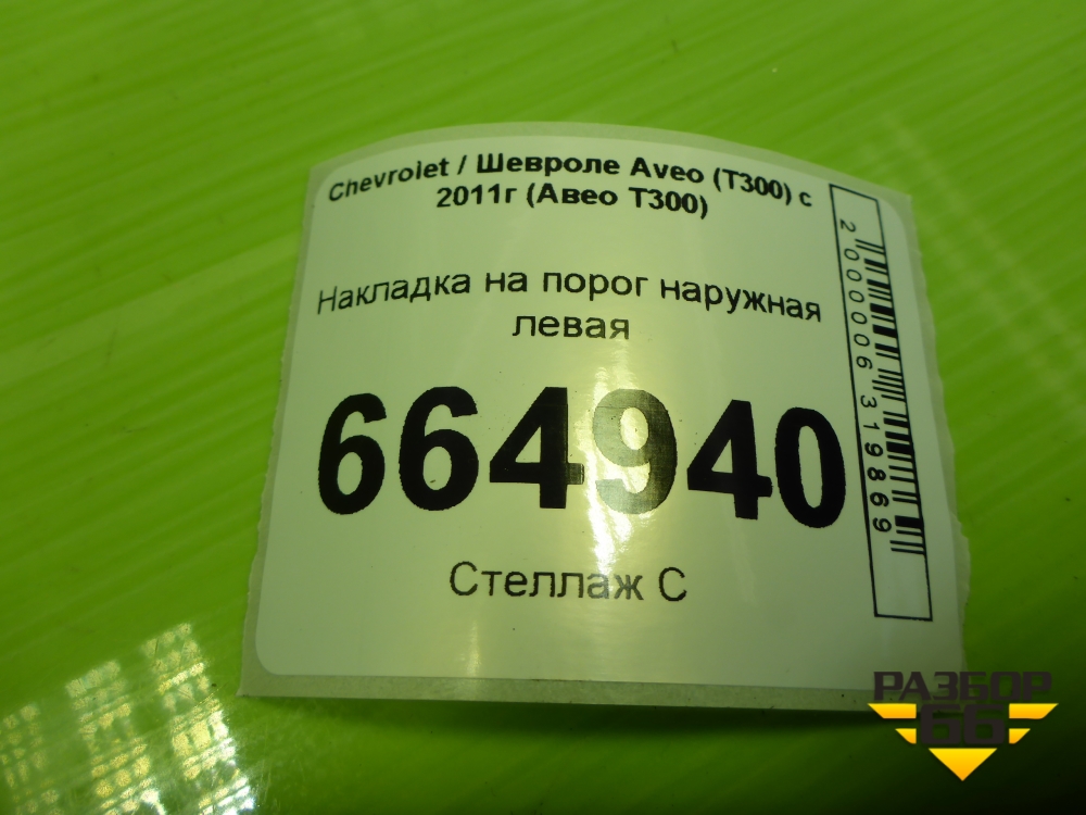 Накладка на порог наружная левая (95971532) для Chevrolet Aveo (Т300) с 2011г (Авео Т300) в Тюмени