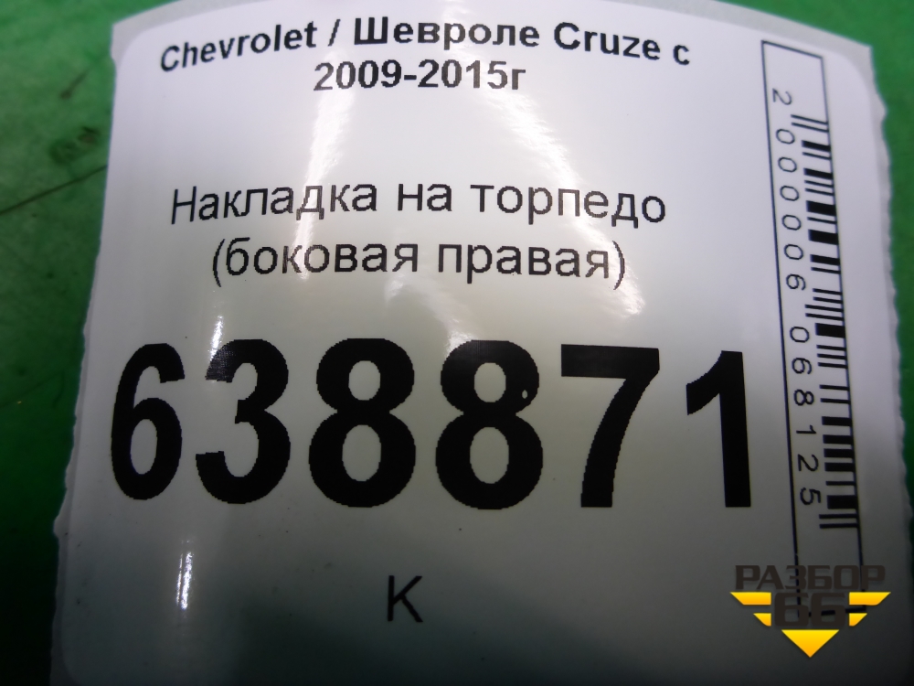 Накладка на торпедо (боковая правая) (96985589) для Chevrolet Cruze c 2009-2015г (Круз) в Тюмени