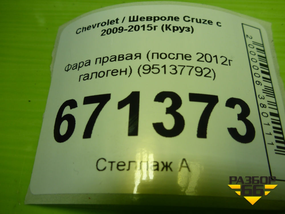 Фара правая (после 2012г галоген) (95137792) для Chevrolet Cruze c 2009-2015г (Круз) в Тюмени