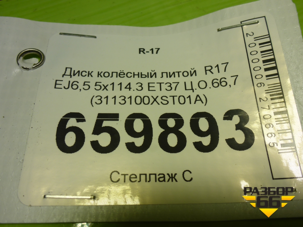 Диск колёсный литой R17 EJ6,5 5x114.3 ET37 Ц.О.66,7 (3113100XST01A) в Тюмени