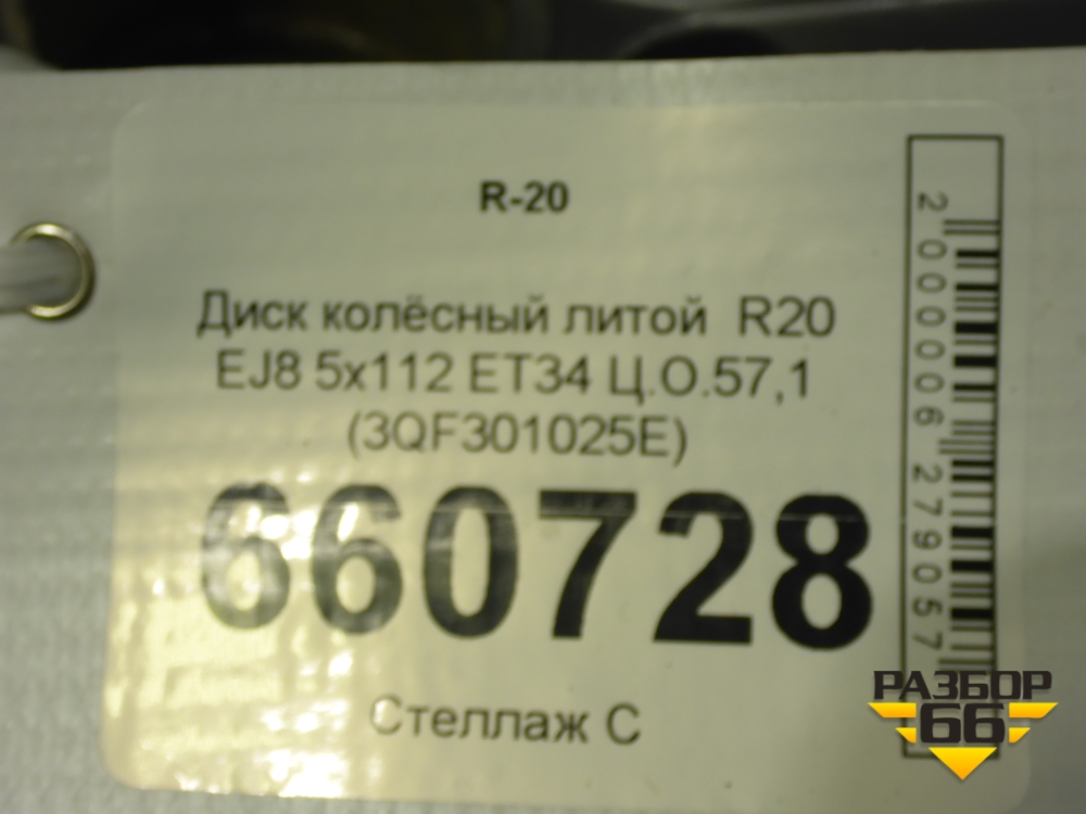 Диск колёсный литой R20 EJ8 5x112 ET34 Ц.О.57,1 (3QF301025E) в Тюмени