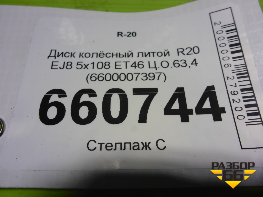 Диск колёсный литой R20 EJ8 5x108 ET46 Ц.О.63,4 (6600007397) в Тюмени