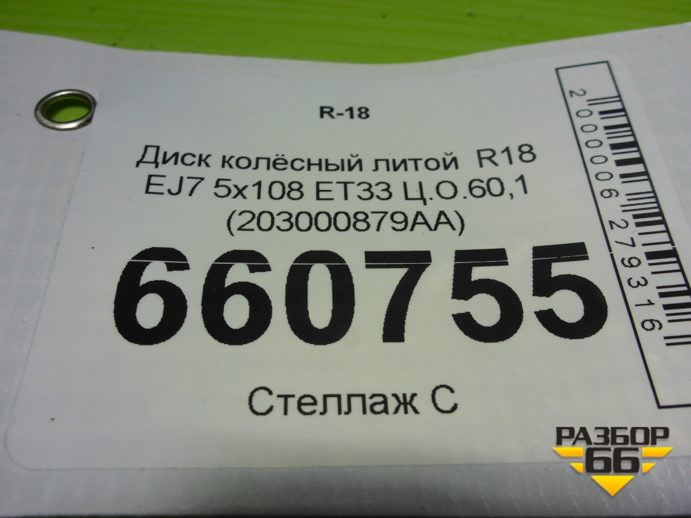 Диск колёсный литой R18 EJ7 5x108 ET33 Ц.О.60,1 (203000879AA) в Тюмени