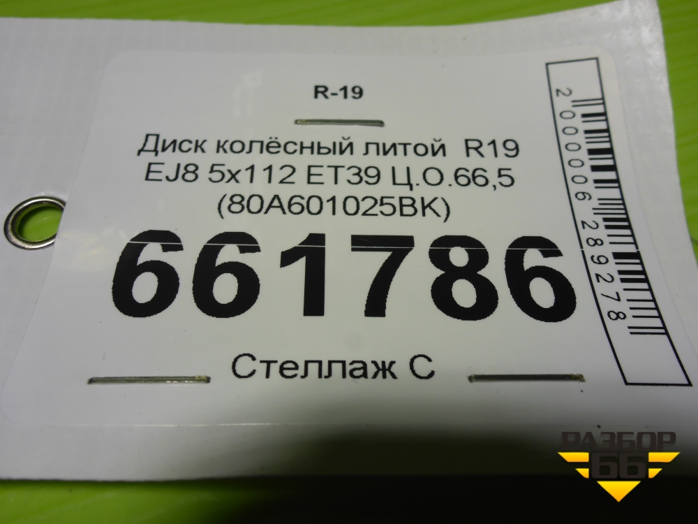 Диск колёсный литой R19 EJ8 5x112 ET39 Ц.О.66,5 (80A601025BK) в Тюмени