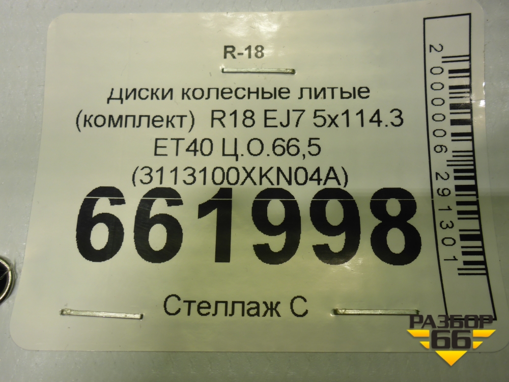 Диски колёсные литые (комплект) R18 EJ7 5x114.3 ET40 Ц.О.66,5 (3113100XKN04A) в Тюмени