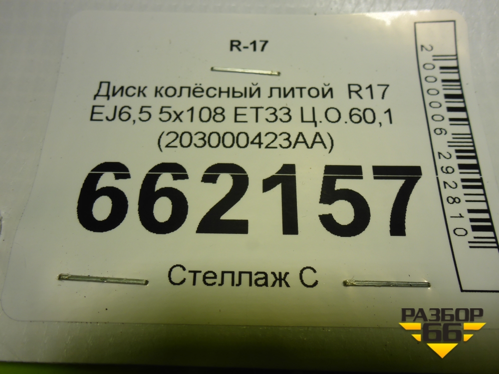 Диск колёсный литой R17 EJ6,5 5x108 ET33 Ц.О.60,1 (203000423AA) в Тюмени