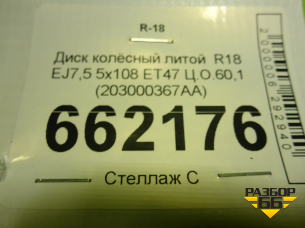 Диск колёсный литой R18 EJ7,5 5x108 ET47 Ц.О.60,1 (203000367AA) в Тюмени
