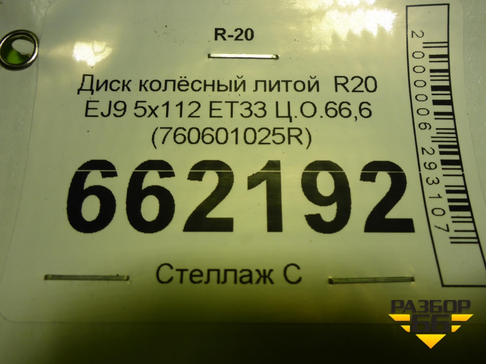 Диск колёсный литой R20 EJ9 5x112 ET33 Ц.О.66,6 (760601025R) в Тюмени